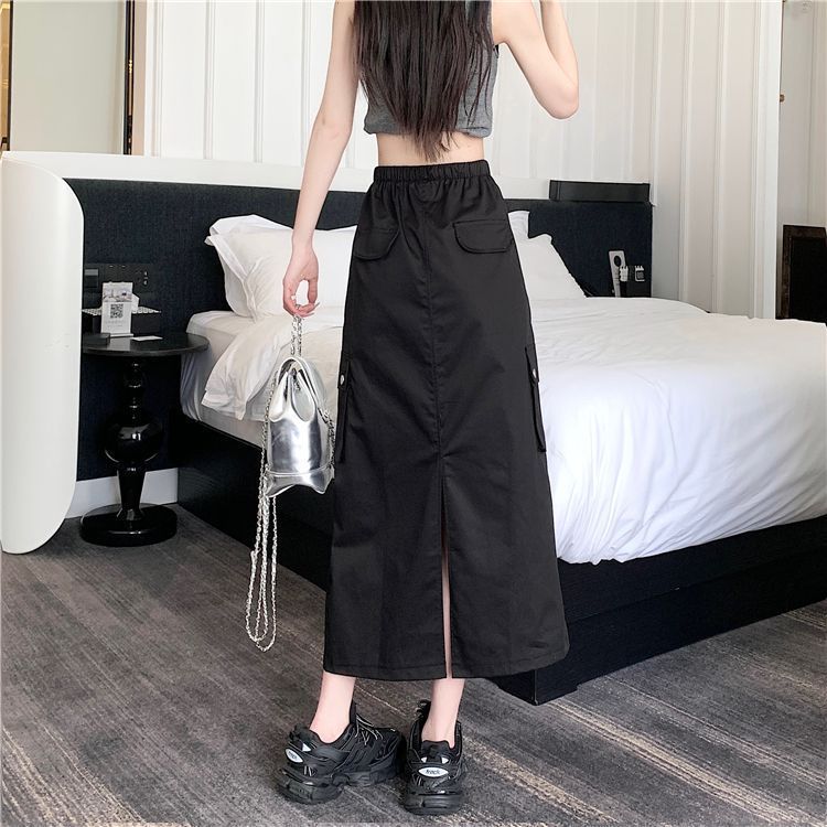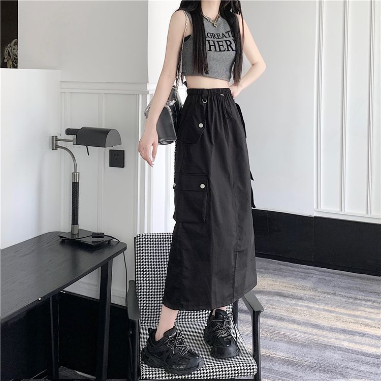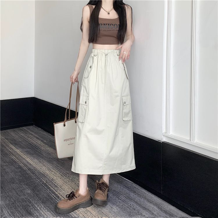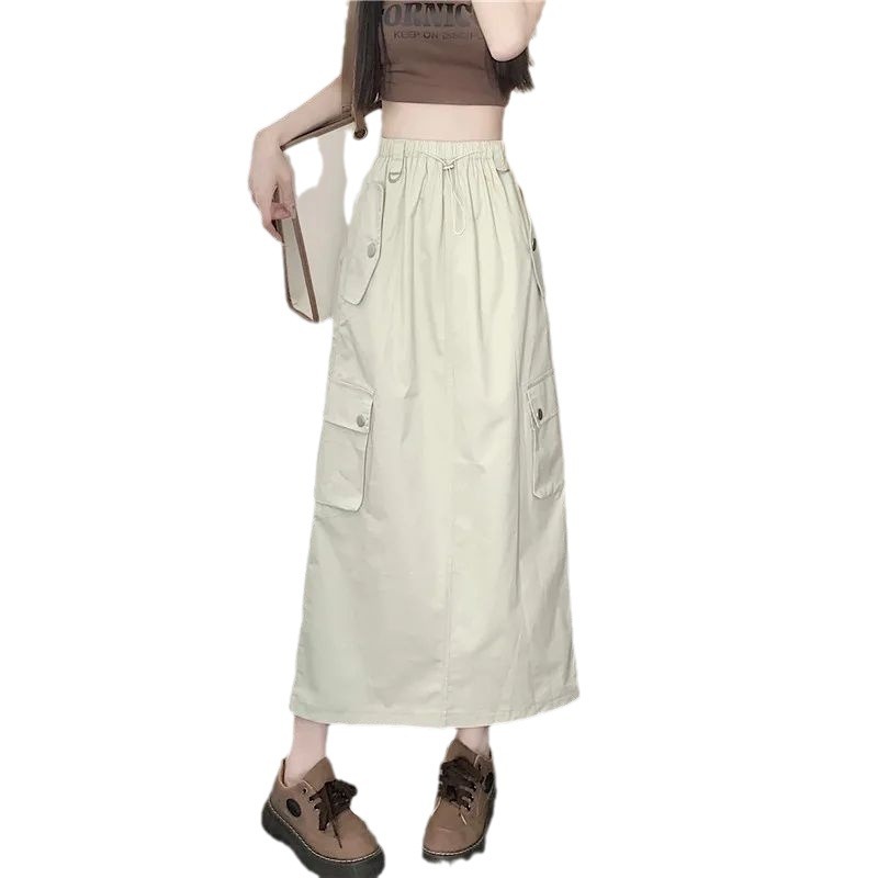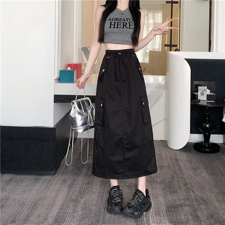 | nameOriginal | American Style Retro Drawstring Tooling Skirt Summer New Split High Waist Loose A- line Slimming Elegant Mid-length Skirt |