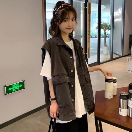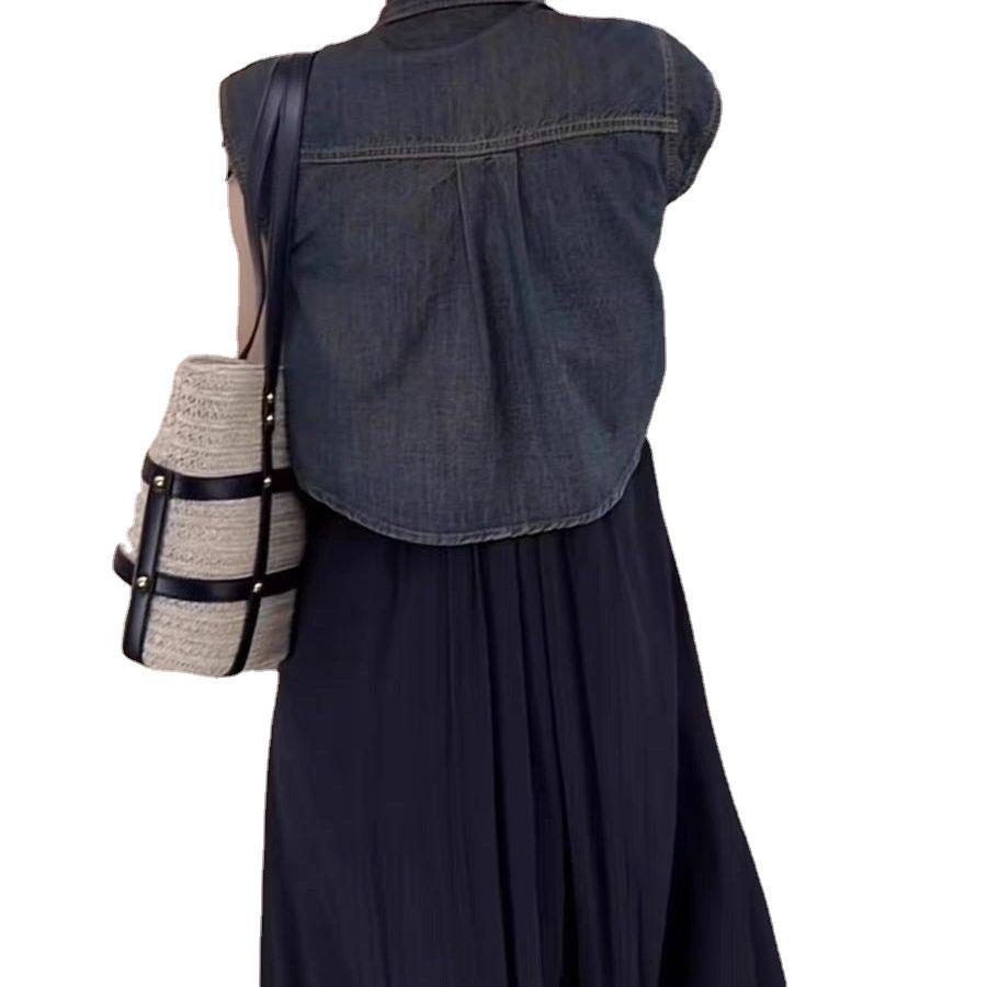 | nameOriginal | American-style retro elegant all-match Denim vest women's POLO collar short sleeveless waistcoat cardigan summer |