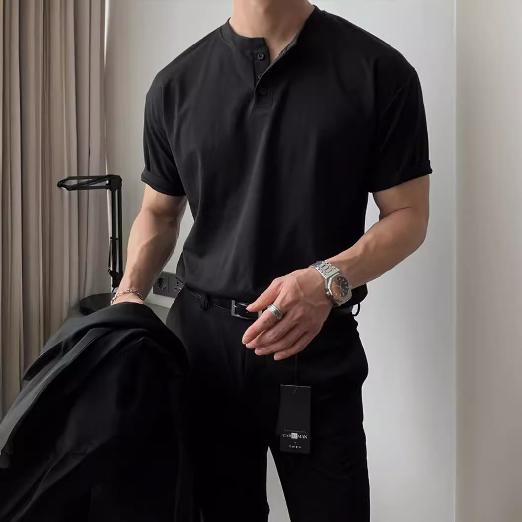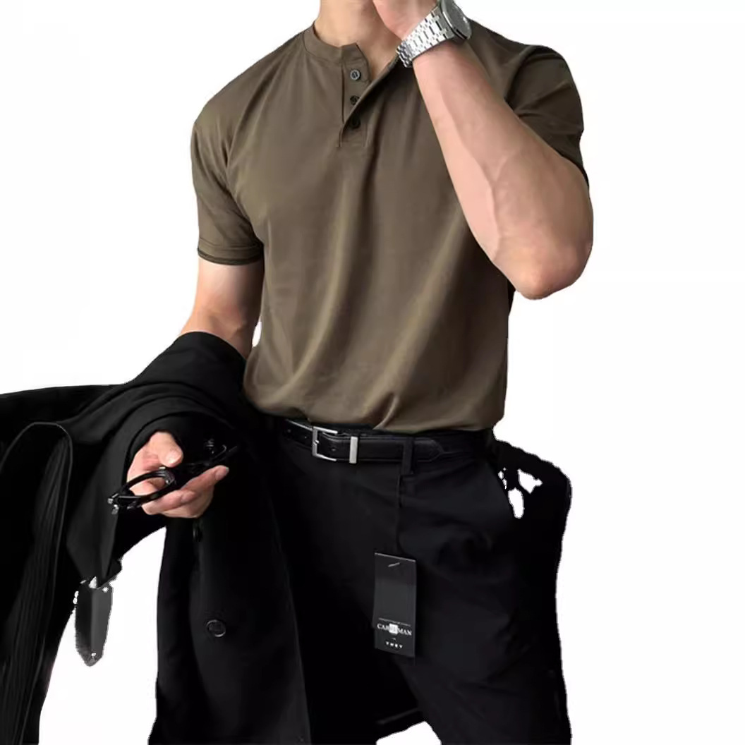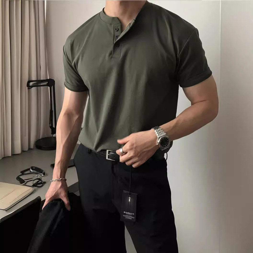 American Style Retro Heavy-weight Short-sleeved T-shirt Men's Polo Shirt Mature and Steady Tight Cuff Fitness Tough Guy Henry Shirt