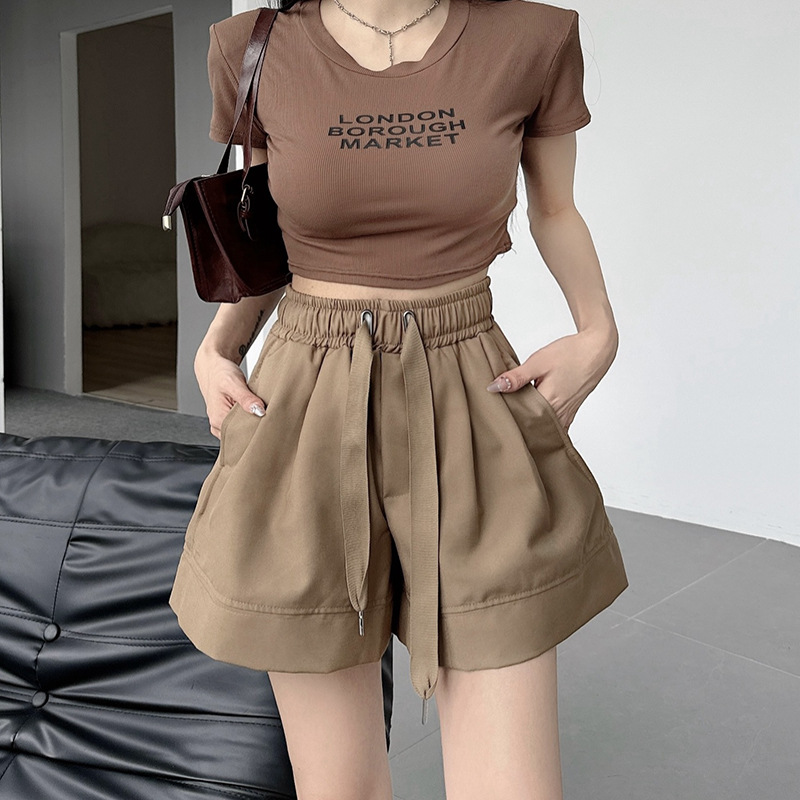| nameOriginal | American Style Retro High Waist Drawstring Wide Leg Shorts Women's Summer Loose Thin Casual Suit Sports A- line Three-point Pants |