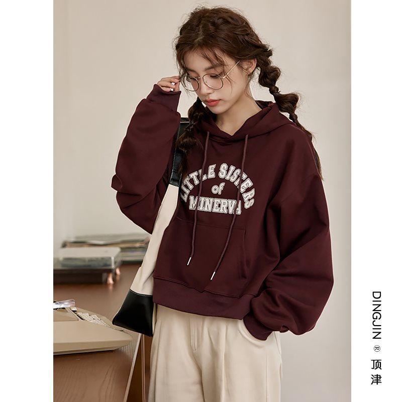 | nameOriginal | American Style Retro Loose Hooded Sweatshirt Women's Autumn 2024 New Style Small Style Lazy Style Casual All-match Short Top |
