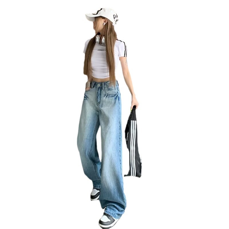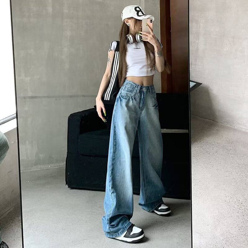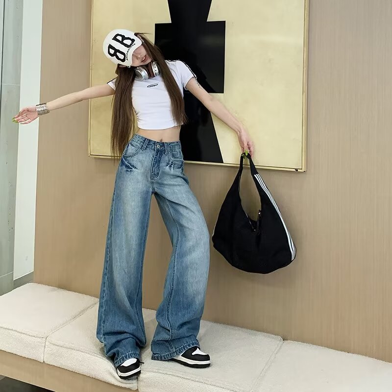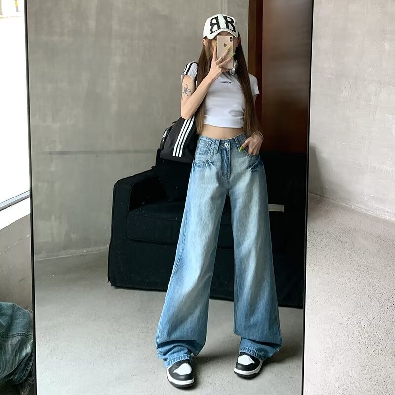 | nameOriginal | American Style Retro Low Waist Wide Leg Jeans Women's Spring and Autumn Crack Washed Loose Slimming All-match Draping Straight Pants |
