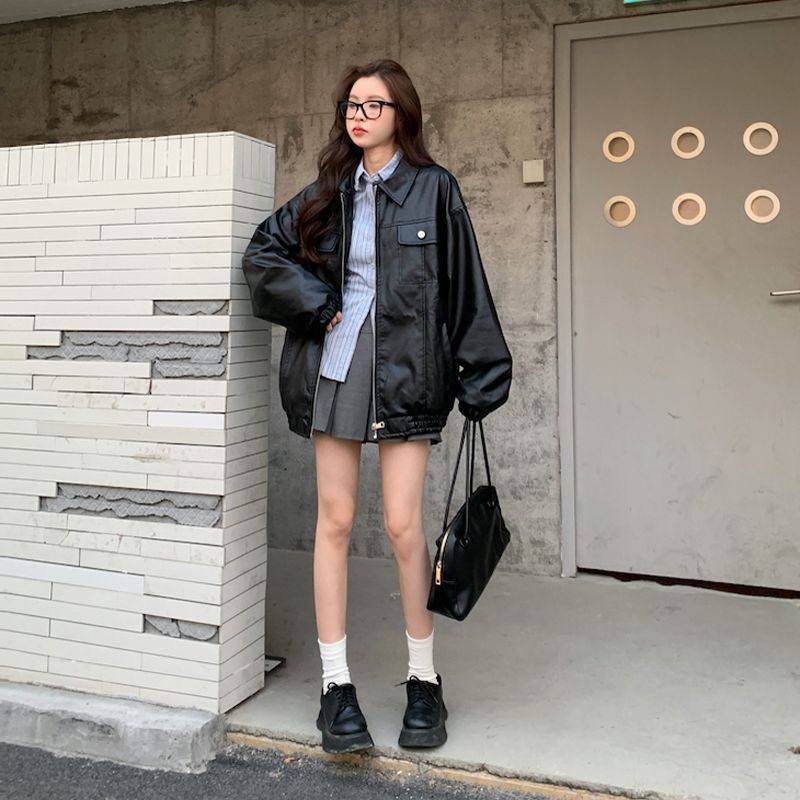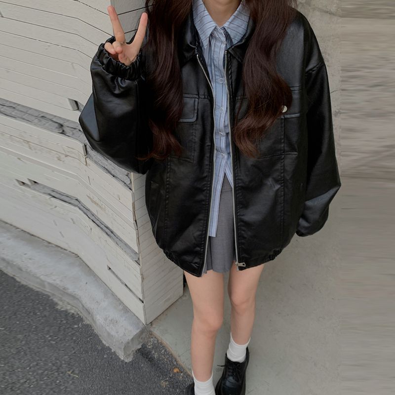 | nameOriginal | American Style Retro Motorcycle Leather Jacket Baseball Suit Women's Spring and Autumn Hong Kong Style High-end Loose All-match Couple Jacket Coat |