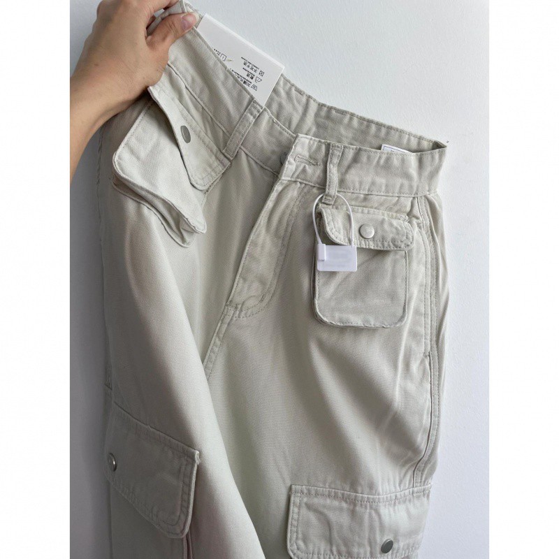 American-style retro multi-pocket overalls women’s spring and autumn fashion design high waist all-match loose straight wide-leg pants