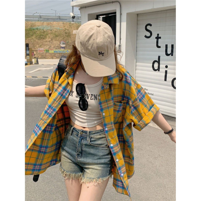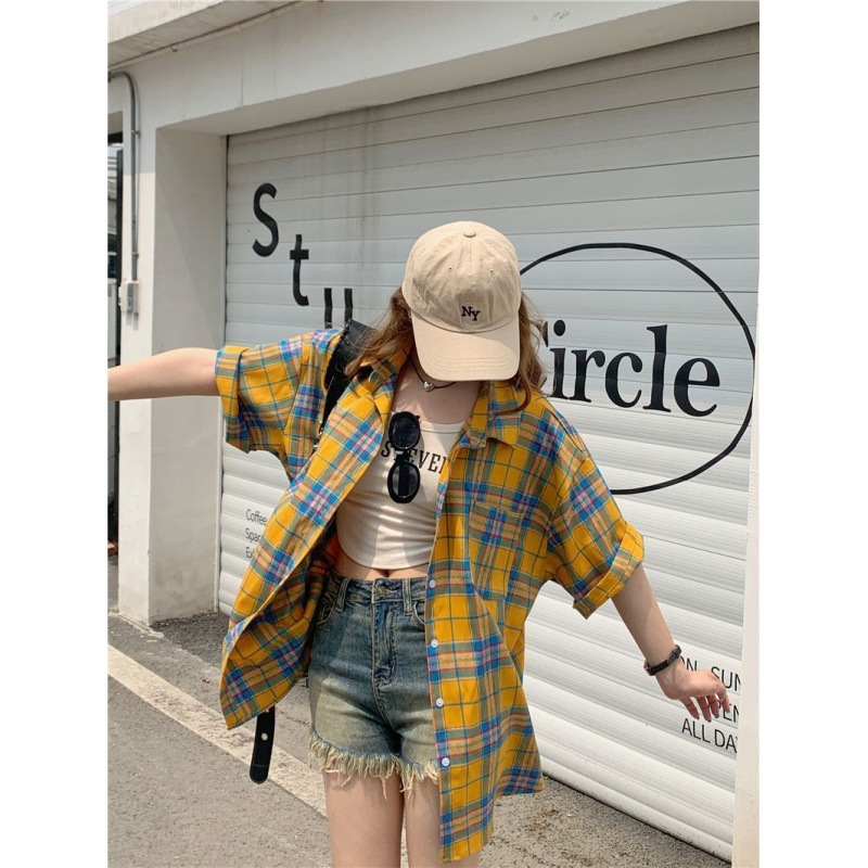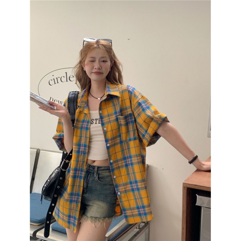 American-style Retro Niche Design Sense Short-sleeved Plaid Shirt Women’s Thin Summer Sunscreen Jacket Small Loose Shirt