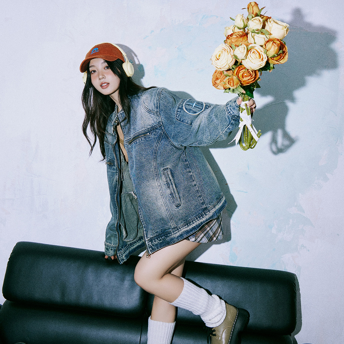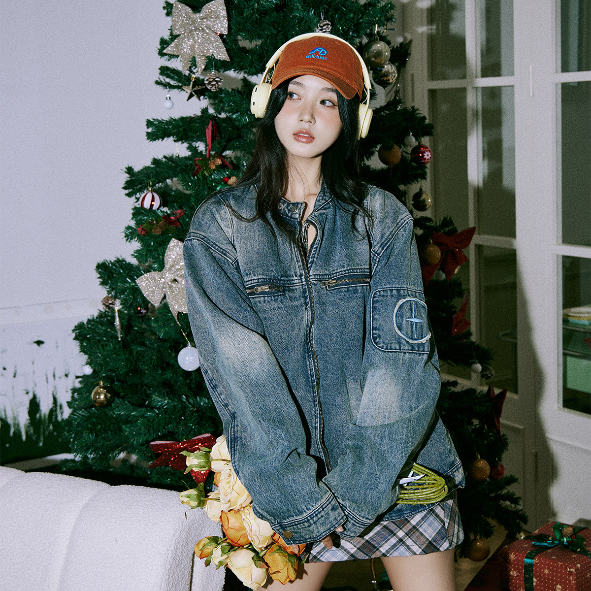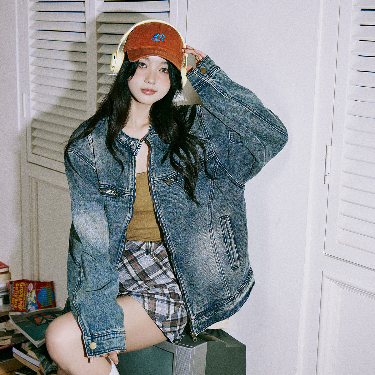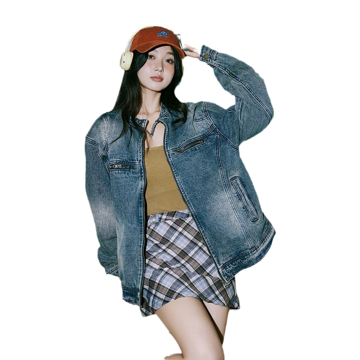 American Style Retro Old Washed Texted Loose Round Neck Denim Jacket Women’s 2024 New Zipper Couple’s Fashionable Jacket