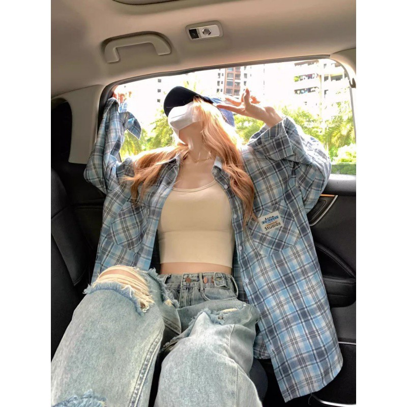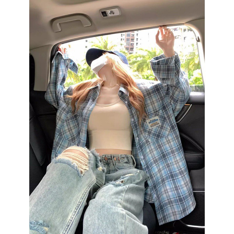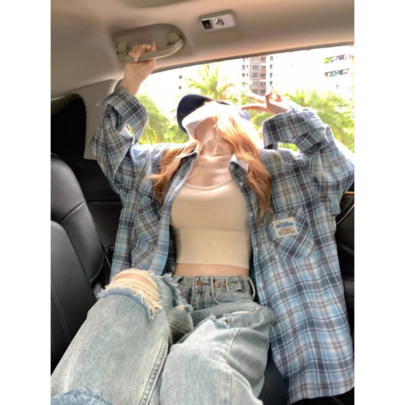 | nameOriginal | American Style Retro Plaid Hong Kong Style Shirt Niche Thin Spring and Autumn Coat Long Sleeve Loose Shirt for Women |