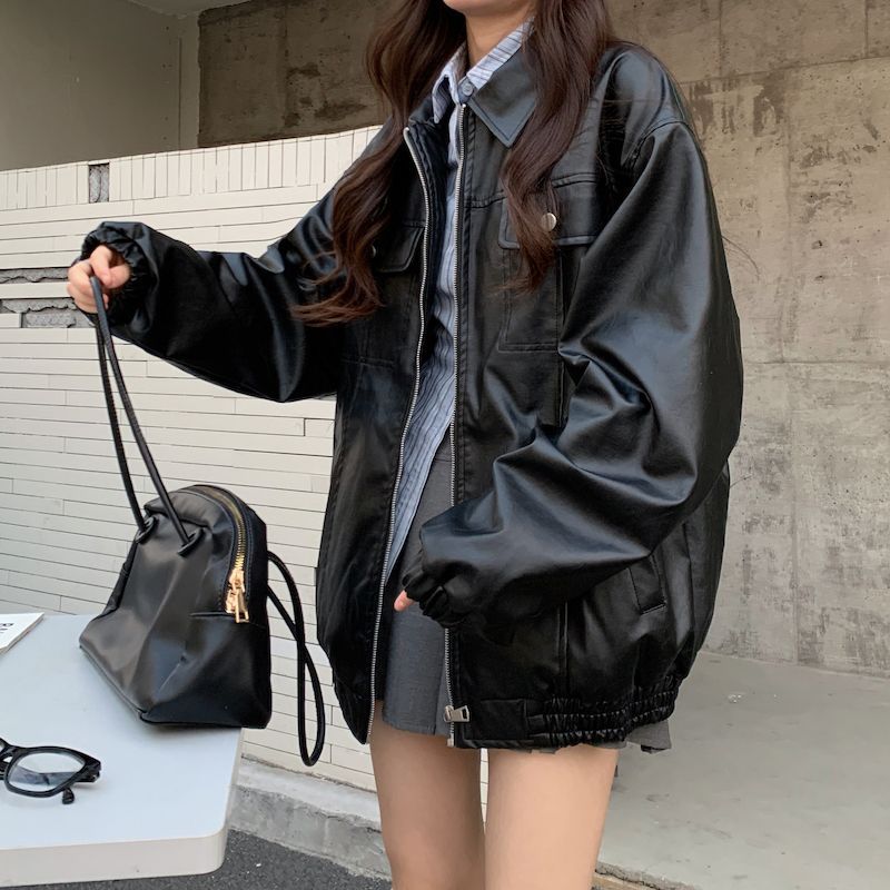 | nameOriginal | American Style Retro PU Motorcycle Leather Jacket Baseball Suit Women's Spring and Autumn Hong Kong Style Loose All-match Couple Jacket Coat |