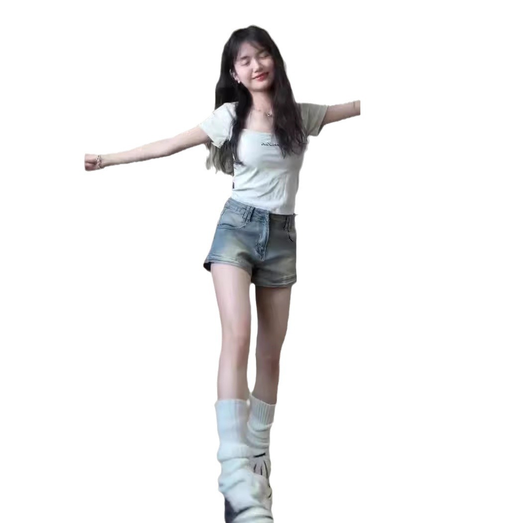 | nameOriginal | American Style Retro Short Denim Shorts Women's Summer Thin High Waist Elastic Slimming A- Shaped Hot Girl Straight Wide-Leg Pants |