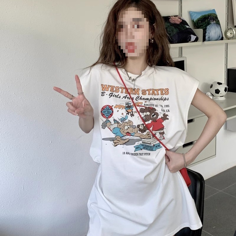 | nameOriginal | American Style Retro Sports Vespa T-shirt Loose Fashion Spice Girl Casual Outer Wear Sleeveless Women's Top for Summer |