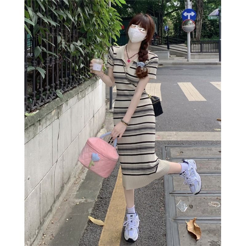 | nameOriginal | American Style Retro Striped Collar dress Women's Elegant Slim-fit Korean Style Slim Vertical Pit Short-sleeved Long Dress for Summer |