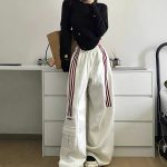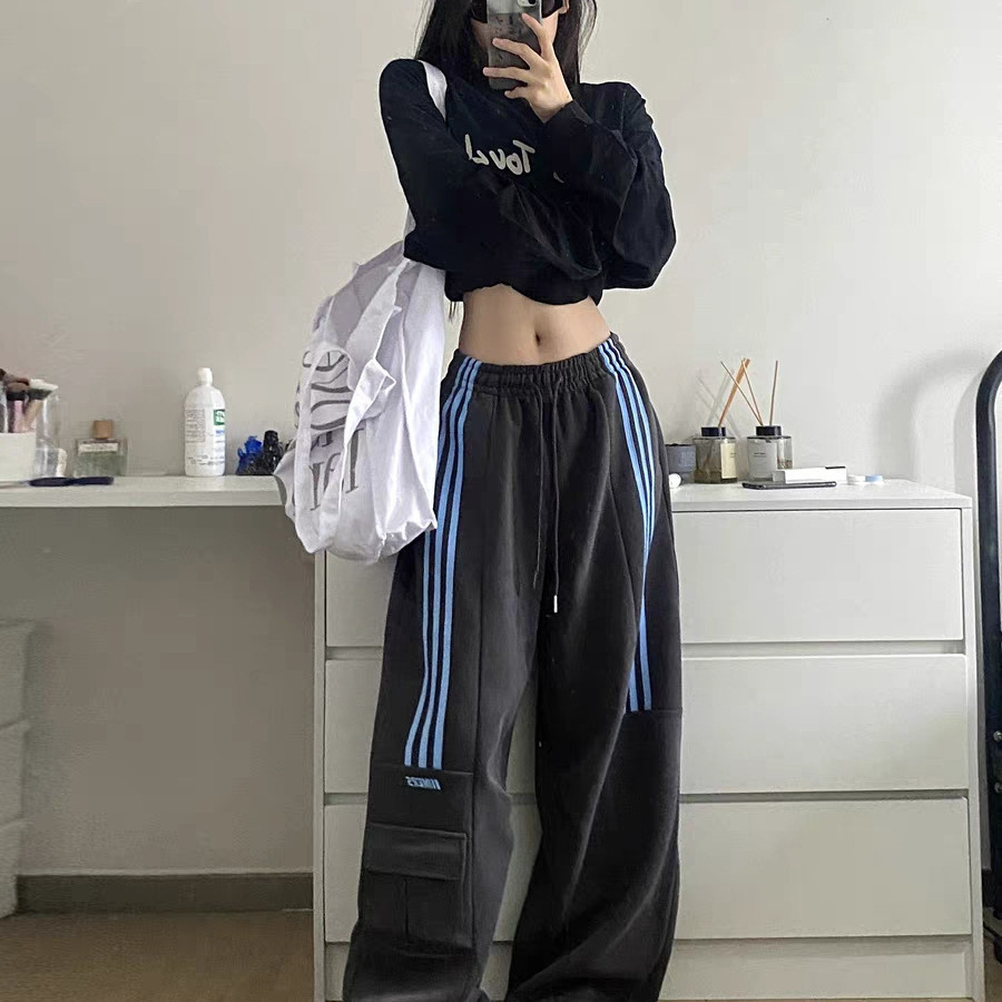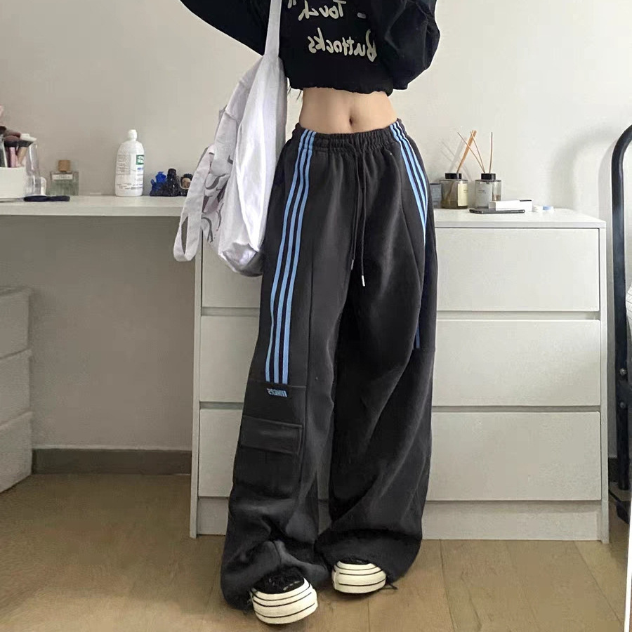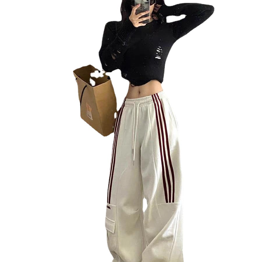 | nameOriginal | American-style Retro Three-bar Casual Sports Pants Women's Spring and Autumn Loose Design High Waist Straight Fleece-lined Wide-leg Sweatpants |