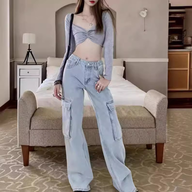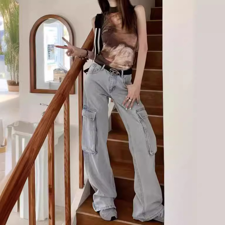 | nameOriginal | American Style Retro Tooling Jeans Women's Autumn 2024 New Loose Straight Design High Waist Wide Leg Pants |