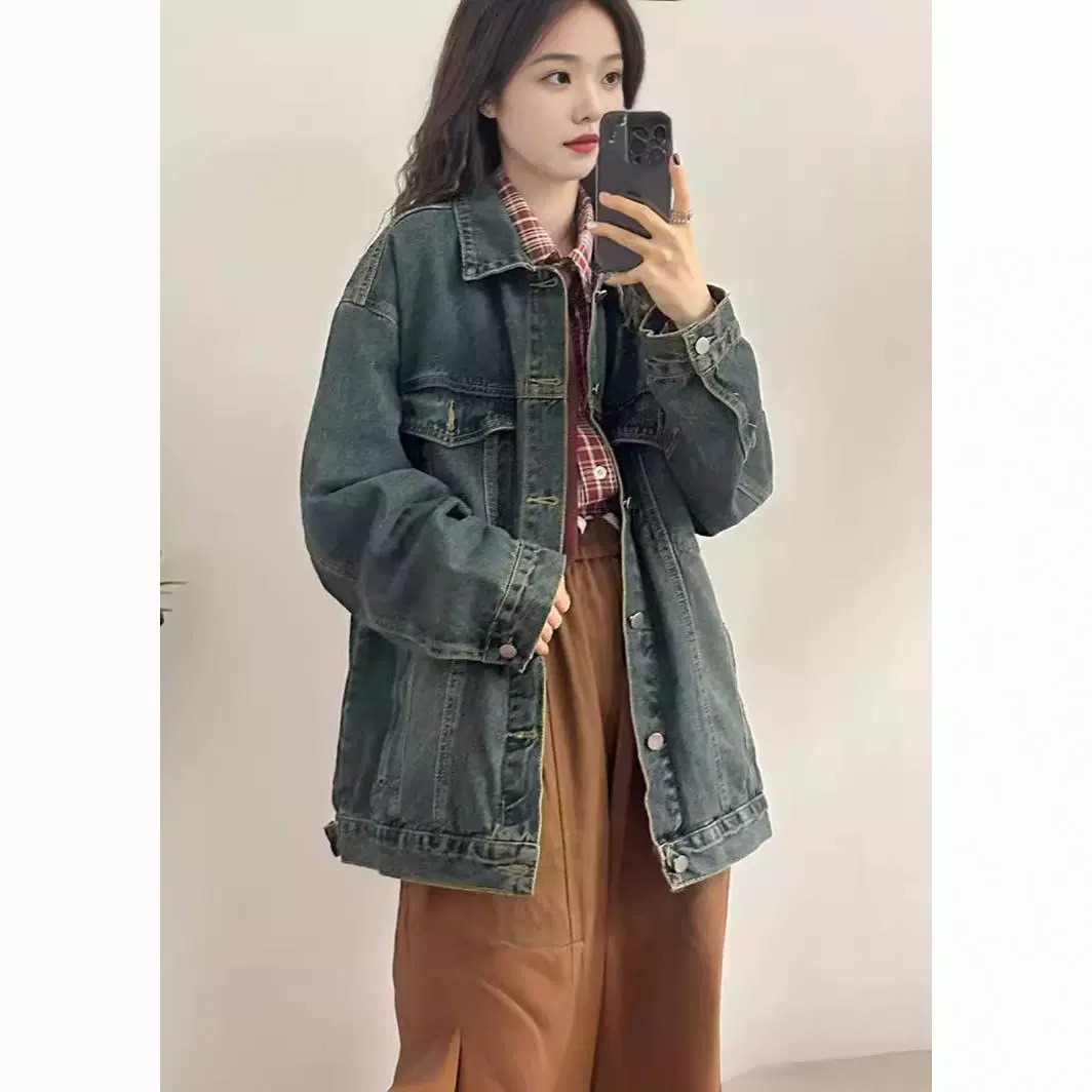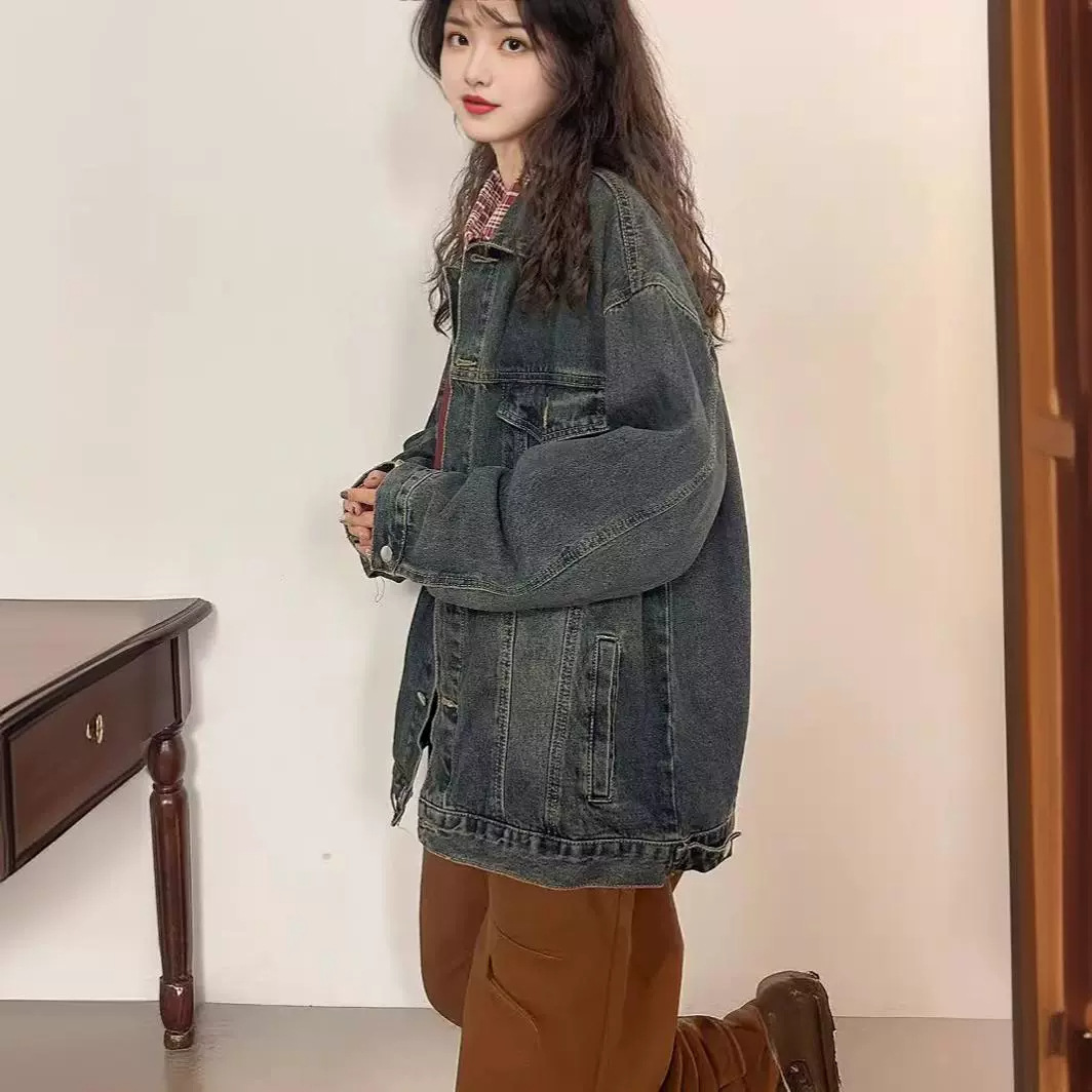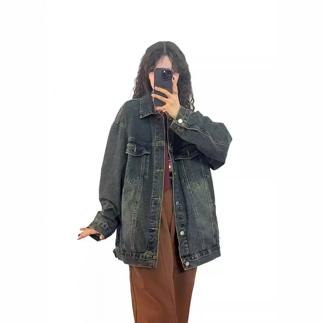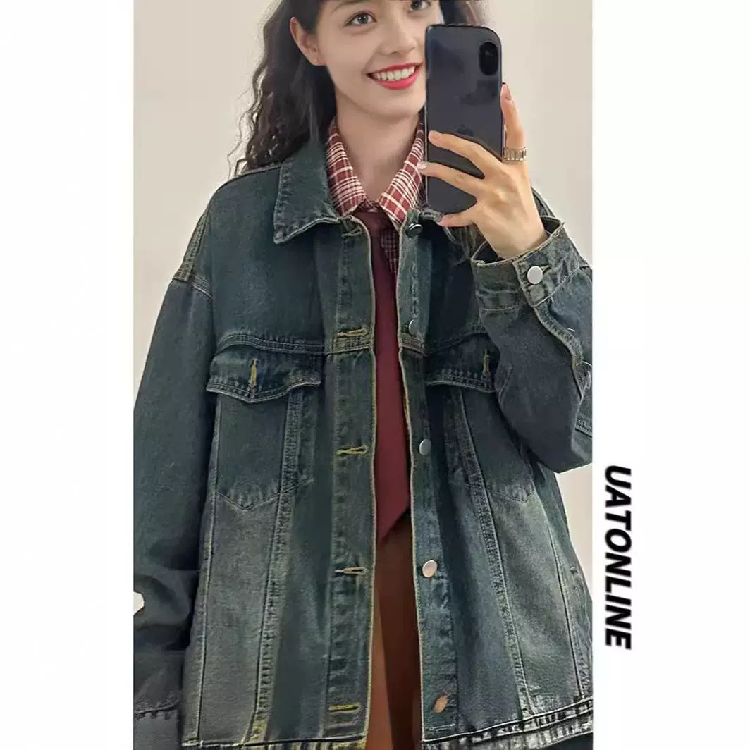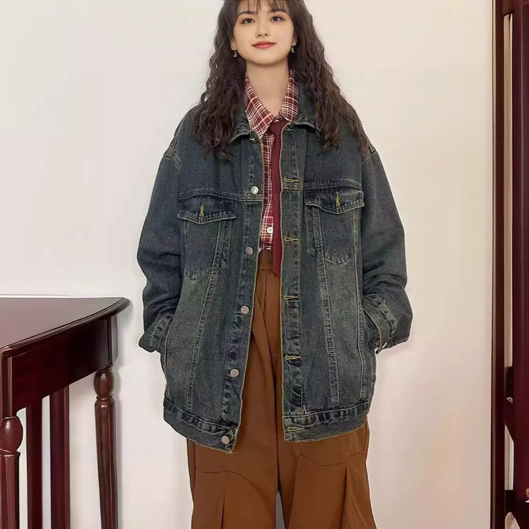 American Style Retro Trendy Brand Blue Gradient Washed Old Denim Coat Women’s Autumn and Winter Loose High-end Style Couple’s Jacket
