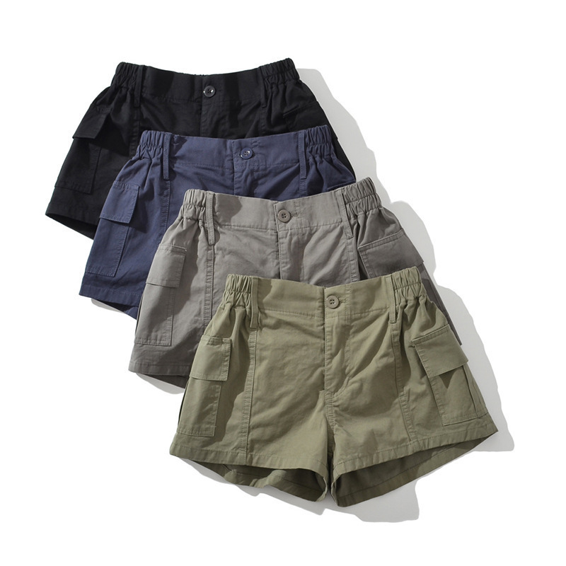 American Style Retro Washed Tooling Shorts Women’s 2023 Summer New Style Spice Girl Pocket Casual Sports Straight Hot Pants Trendy