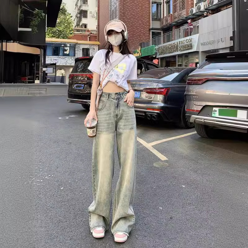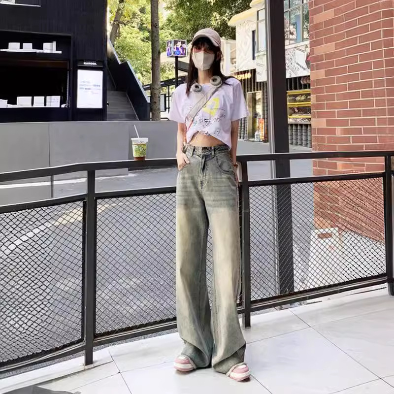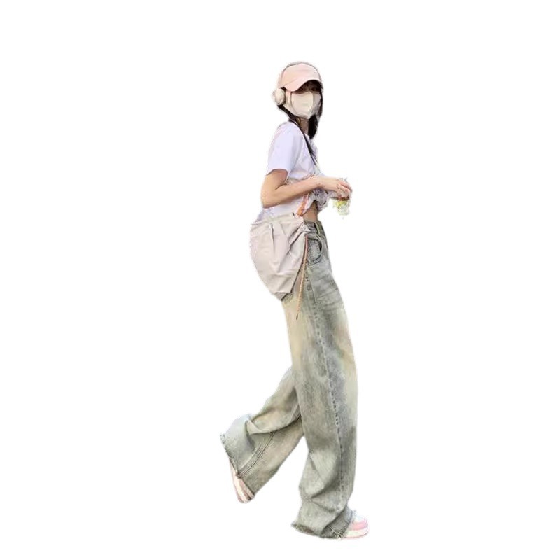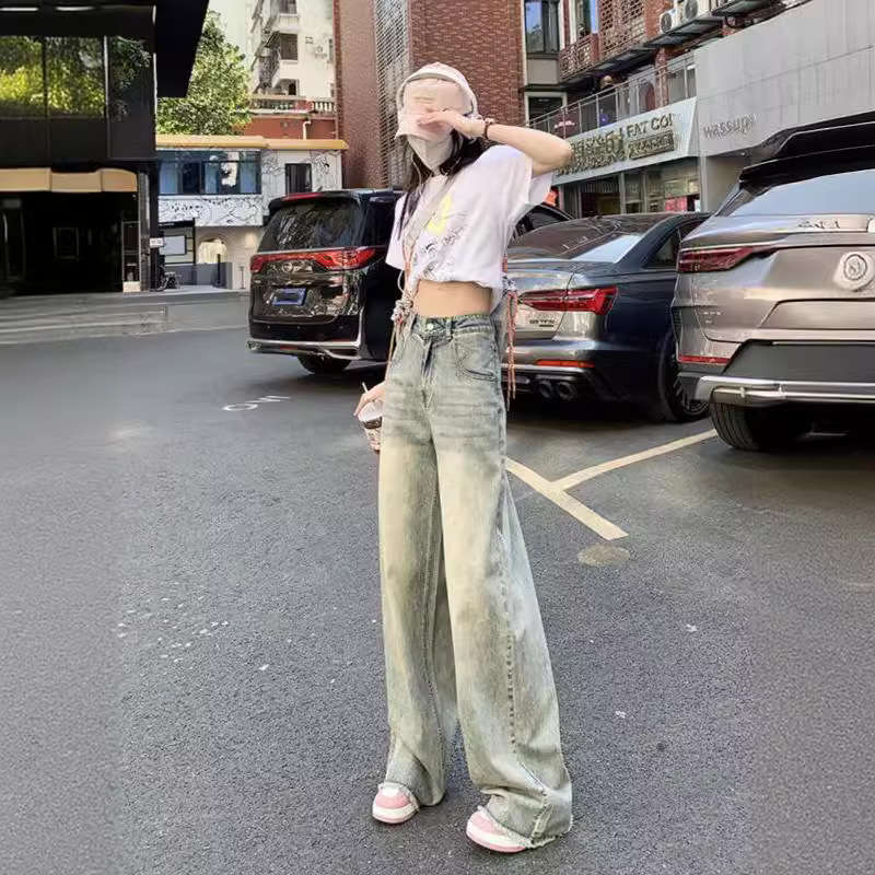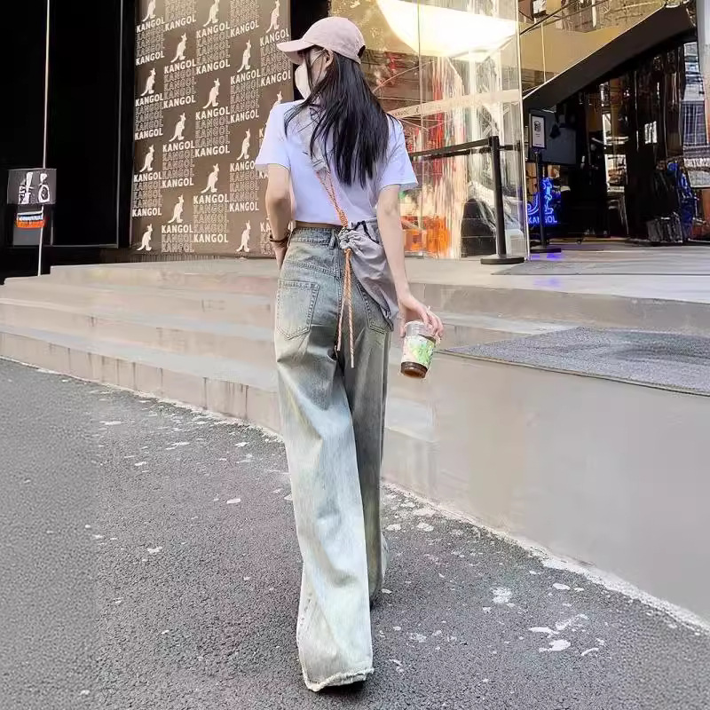 | nameOriginal | American Style Retro White Wear Old Wide Leg Jeans Women's Spring and Summer New High Waist Slimming Loose Dipped Pants |