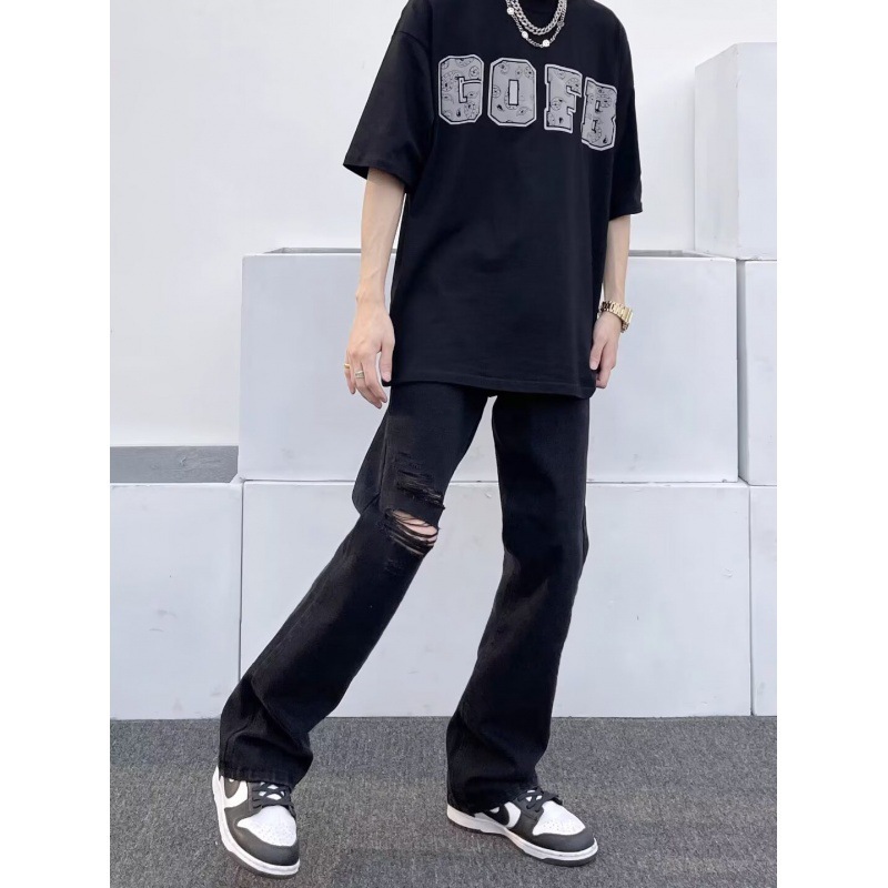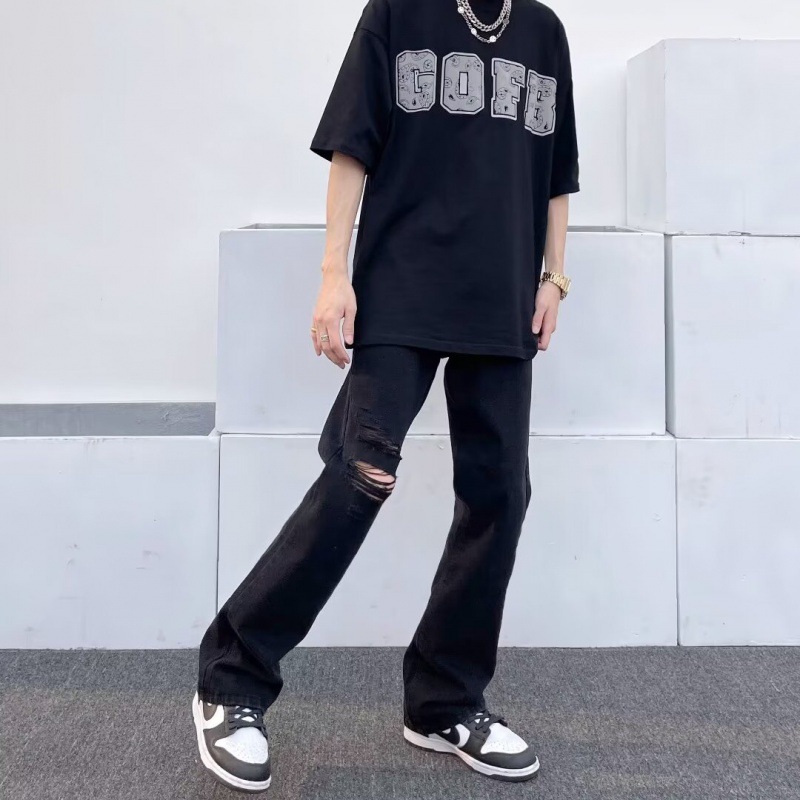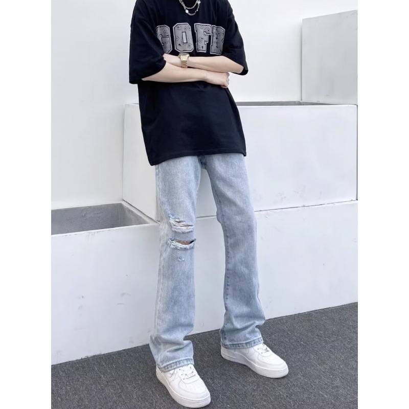 | nameOriginal | American Style Simple Slim Look Ripped Jeans Men's and Women's All-match High Street Straight Microflared Long Pants |