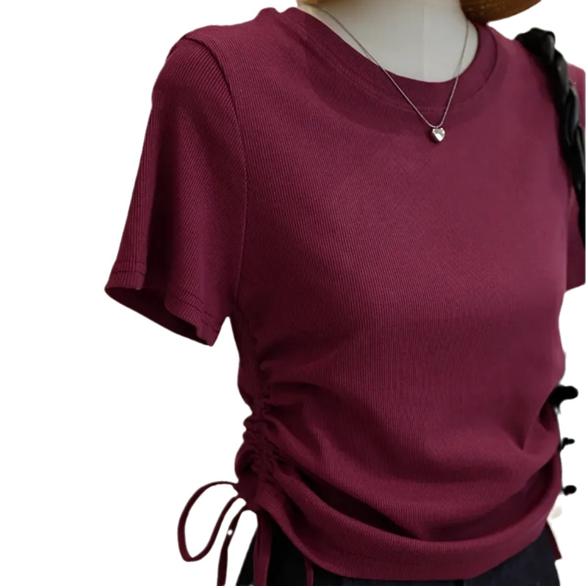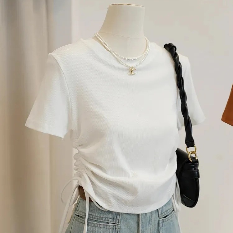 | nameOriginal | American-style slim-fit bottoming short-sleeved T-shirt women's summer hot girl design sense niche inner drawstring round neck top |