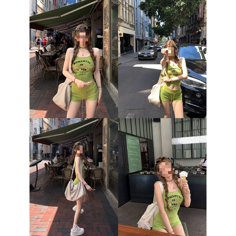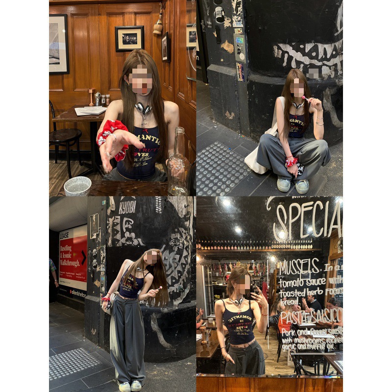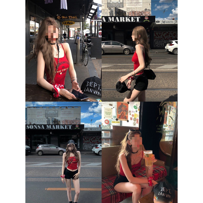 | nameOriginal | American Style Sweet Bean Vintage Letter Printed Camisole with Chest Pad Women's Slim-fit Slimming Spice Girl Top Summer |