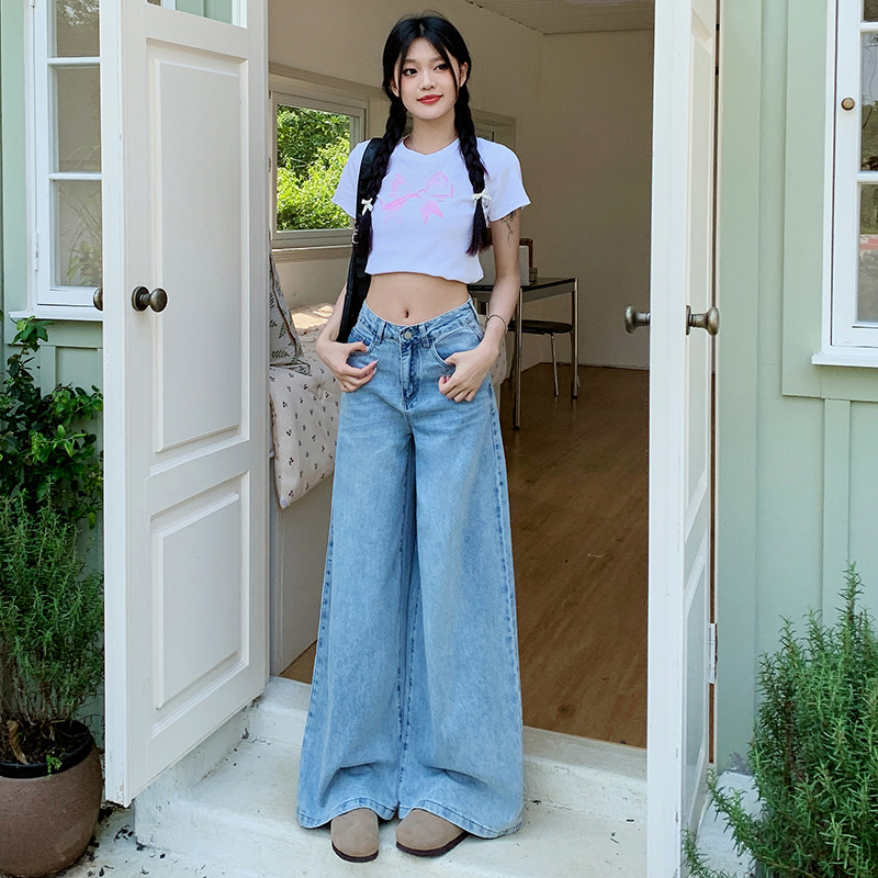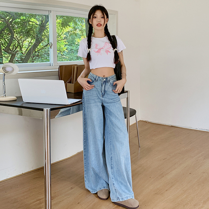 | nameOriginal | American Style Thin Loose Wide-leg Jeans Women's 2024 Summer New High Waist Dipped Straight Slim-looking Trousers |