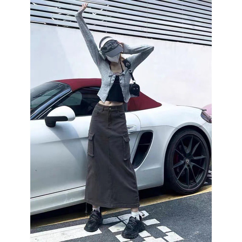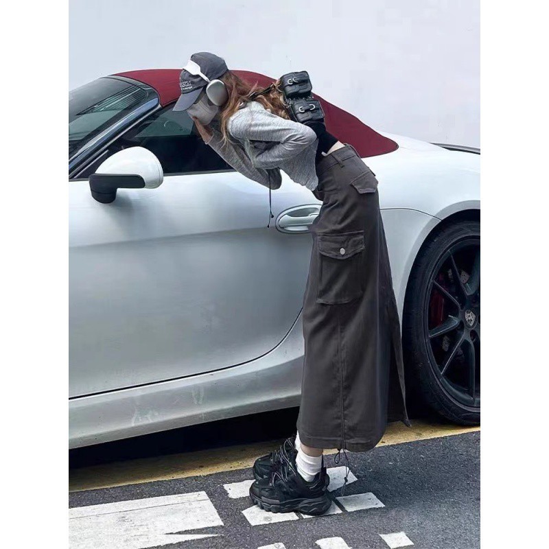 | nameOriginal | American Style Tooling High Waist 2024 Spring New Drawstring Denim Skirt Women's Summer Split Mid-length Skirt |