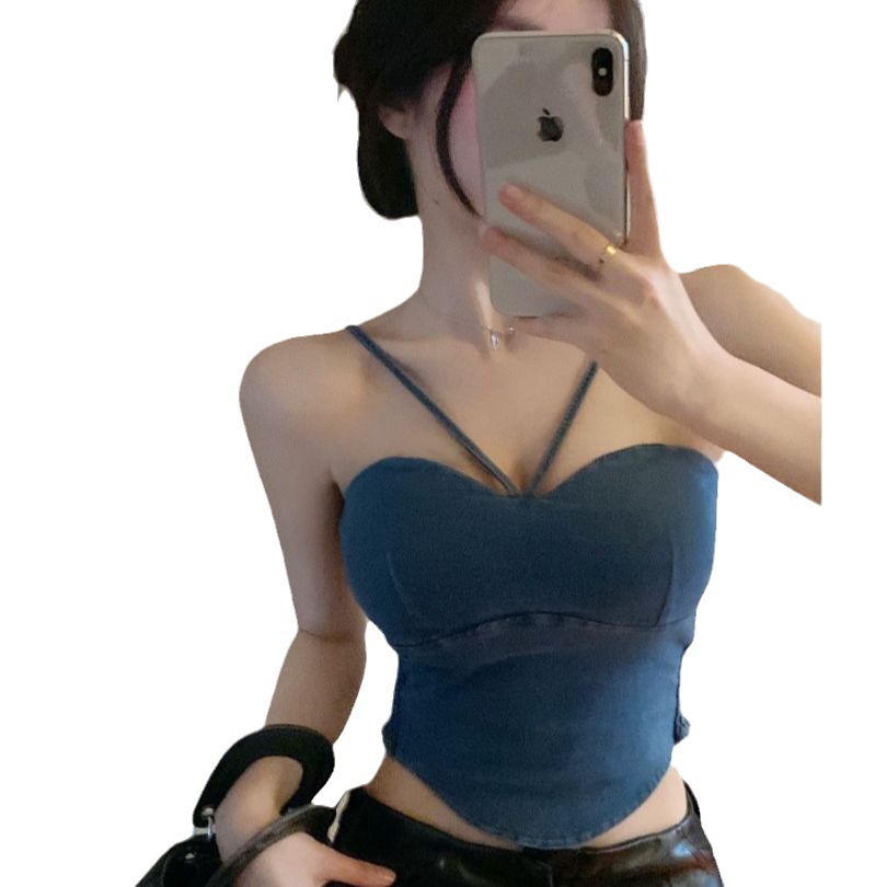 | nameOriginal | American Style Vest Denim Short Neck Strap Sexy New Season with Chest Pad Tube Top Hot Girl Sleeveless Top for Women |