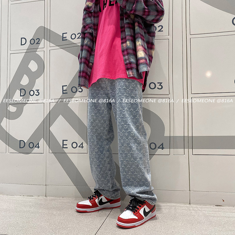 | nameOriginal | American style vibe style pants high street fashion ins design sense full print jacquard jeans retro hiphop straight pants |