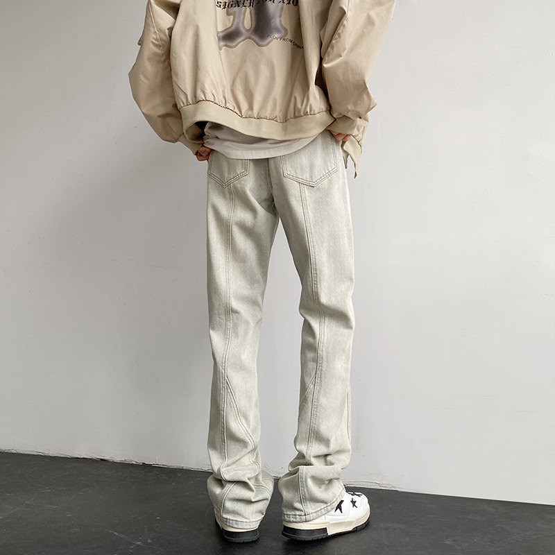 American-style washed jeans men’s spring and autumn 2024 New loose wide-leg vibe high street micro-pull straight pants