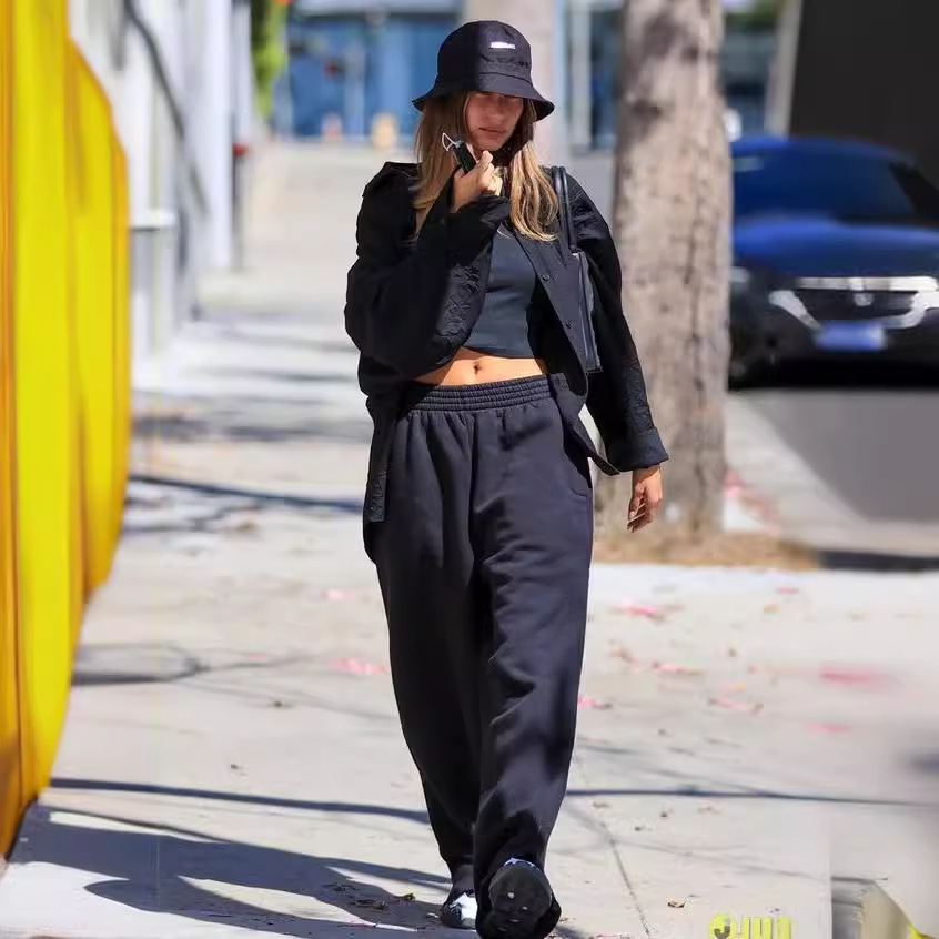 American Style Well-worn Pants Women’s Autumn and Winter New Solid Color Elasticated Waist Casual Pants Loose Dosing All-match Straight Pants Trendy