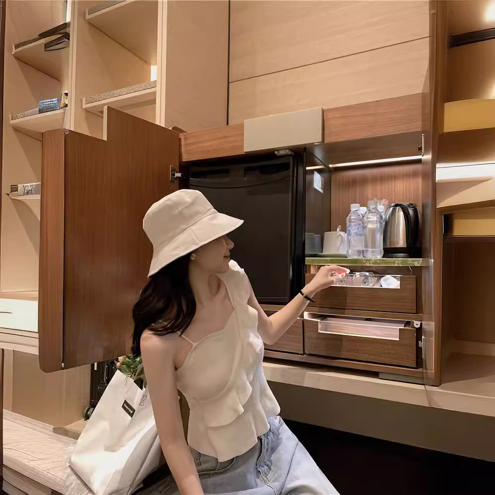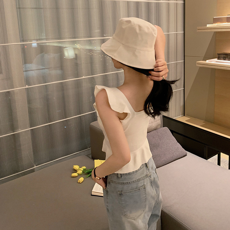 | nameOriginal | American Style White Knitted Camisole Women's French Sweet and Spicy Style Ruffled Slim-Fit Short Thai Niche Top |