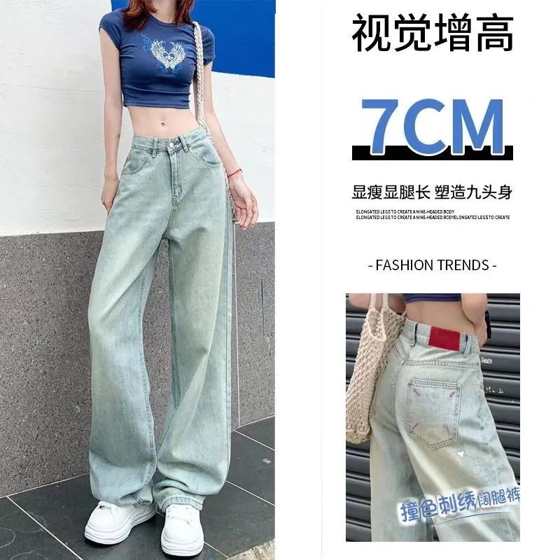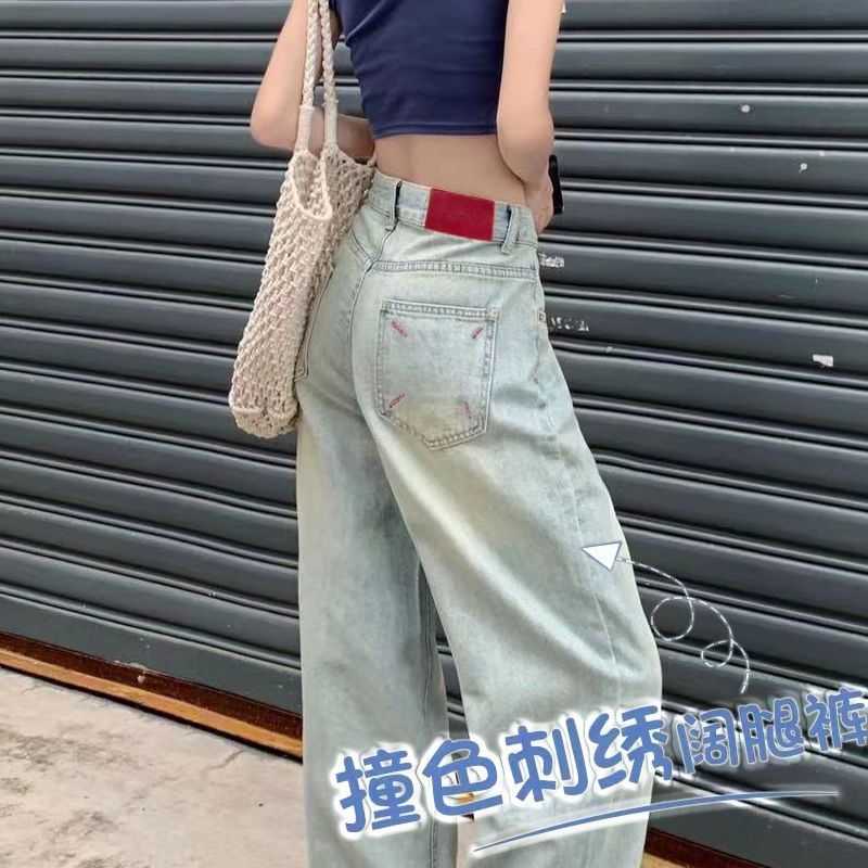 | nameOriginal | American Style Wide Leg New Jeans Women's High Waist Slim Embroidered 2024 Spring Contrast Glacier Blue Loose Dipping |