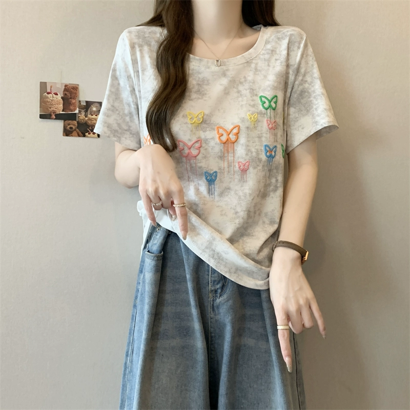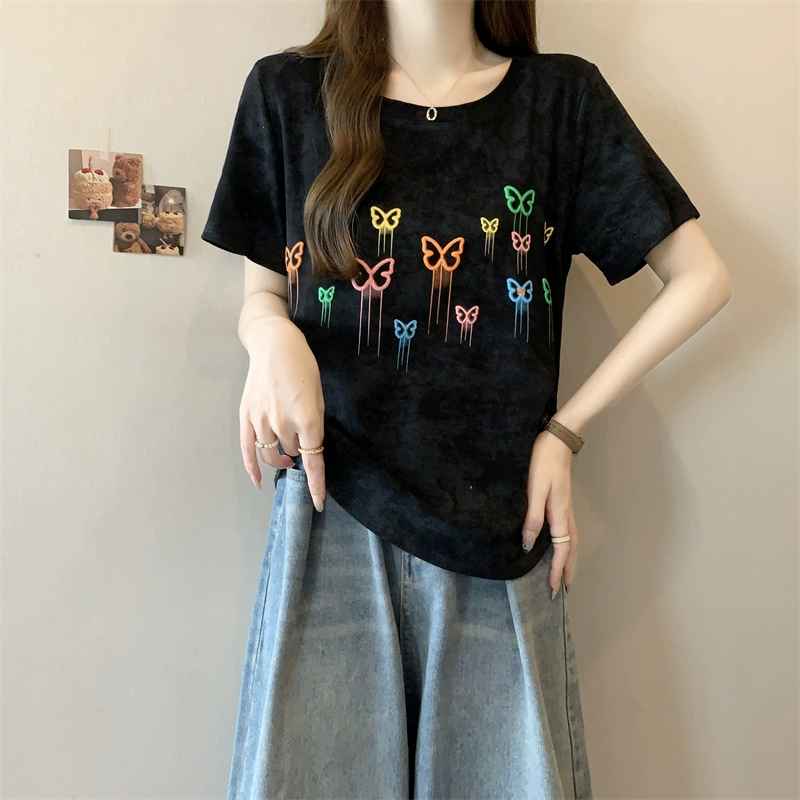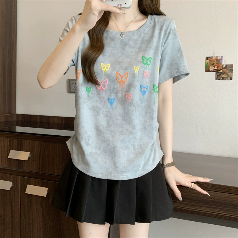 | nameOriginal | American summer slimming right shoulder printed short-sleeved T-shirt |