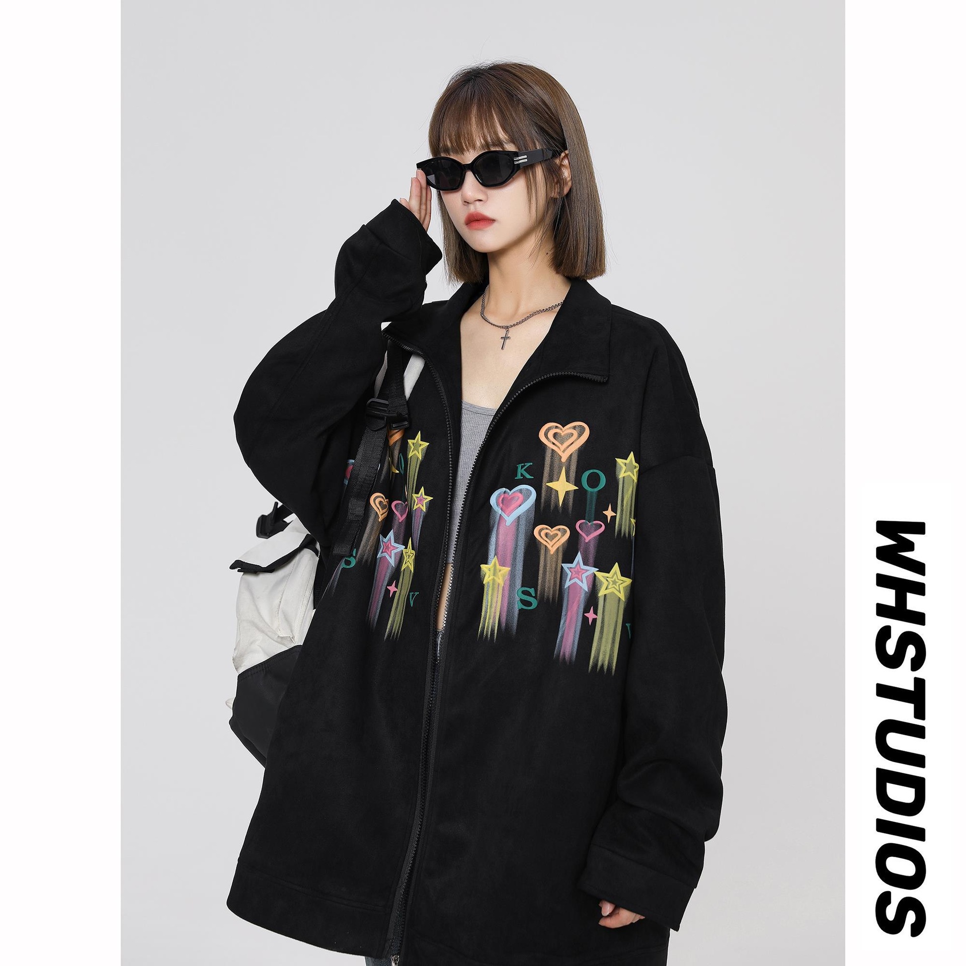 | nameOriginal | American Vintage Letter Pic Embroidered Hooded Sweatshirt for Men and Women Spring New Loose Bf Couple Jacket |