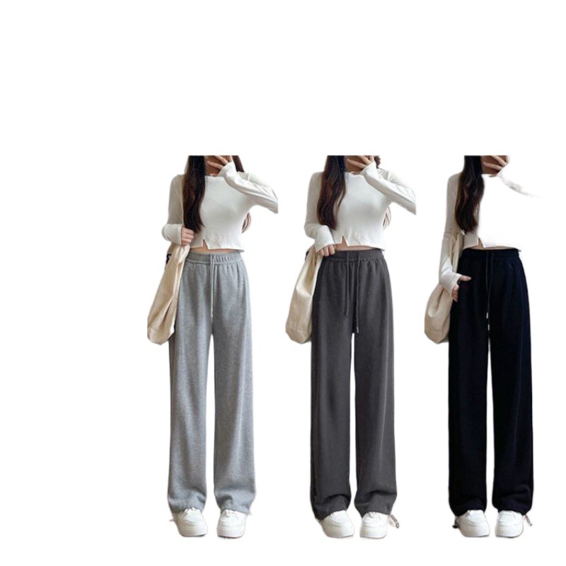 American White Gray Sports Pants Women’s 2024 Summer New Loose Wide Leg Straight Casual Foot Sweatpants