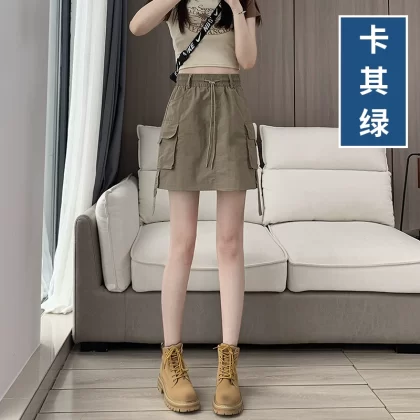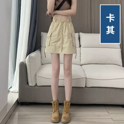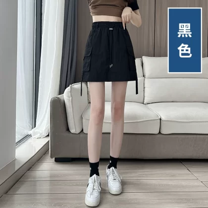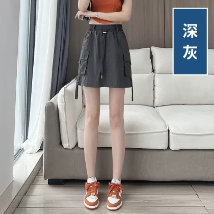 American workwear skirt for women in summer thin ice silk quick-drying skirt high-waisted A-line slim casual hip-covering culottes
