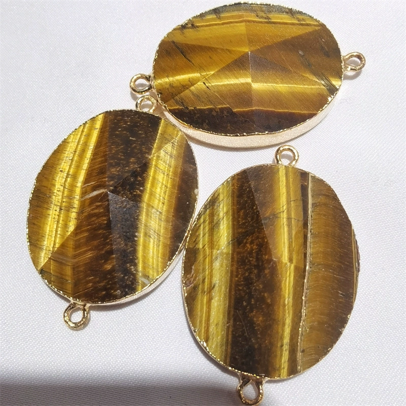 | nameOriginal | Amethyst tiger stone six-sided cone with round double pendant gilt edge bracelet connector pendant fashionable and exquisite gemstone |
