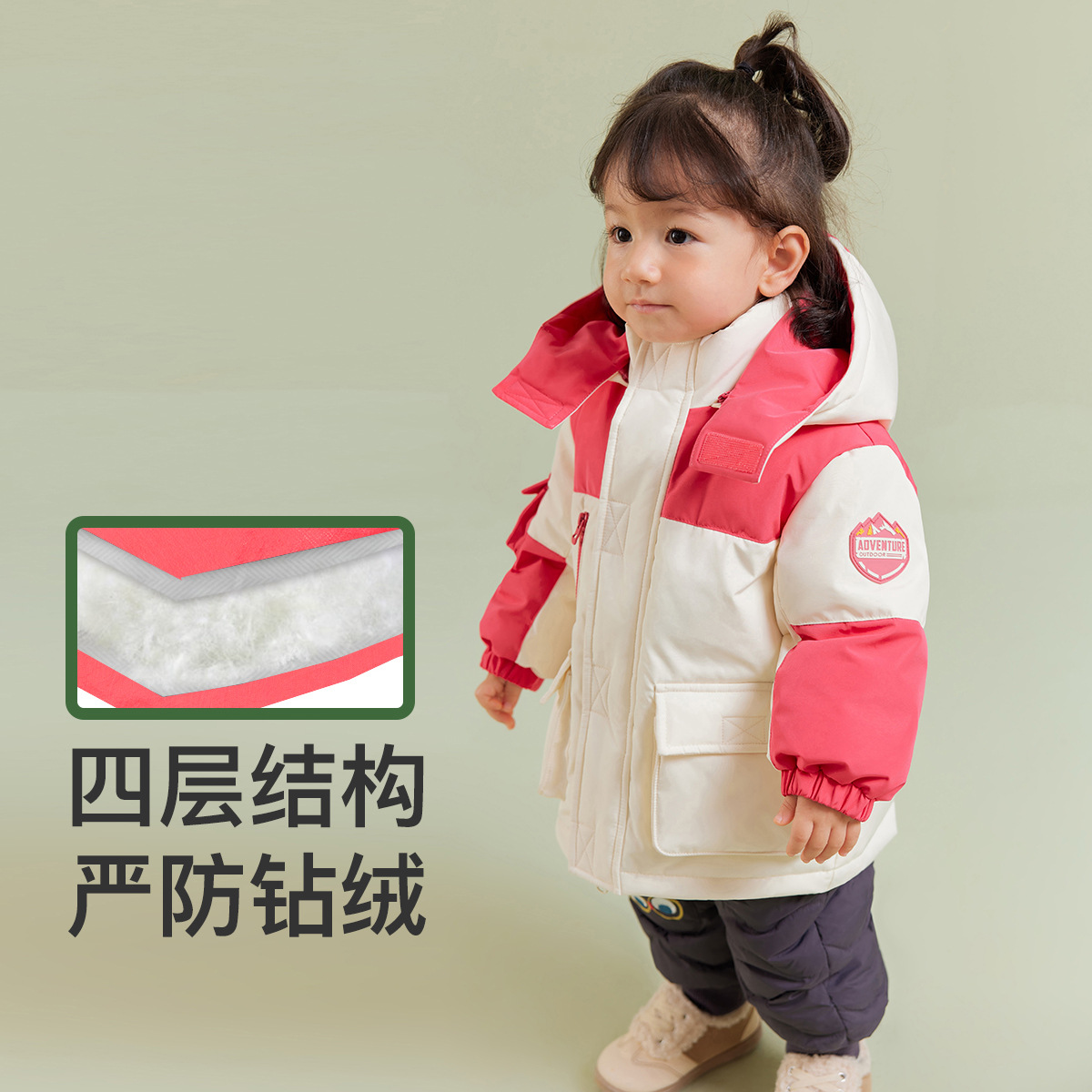 Amira children’s clothing 2023 Winter new children’s stitching contrast color down jacket boys and girls mid-length warm jacket