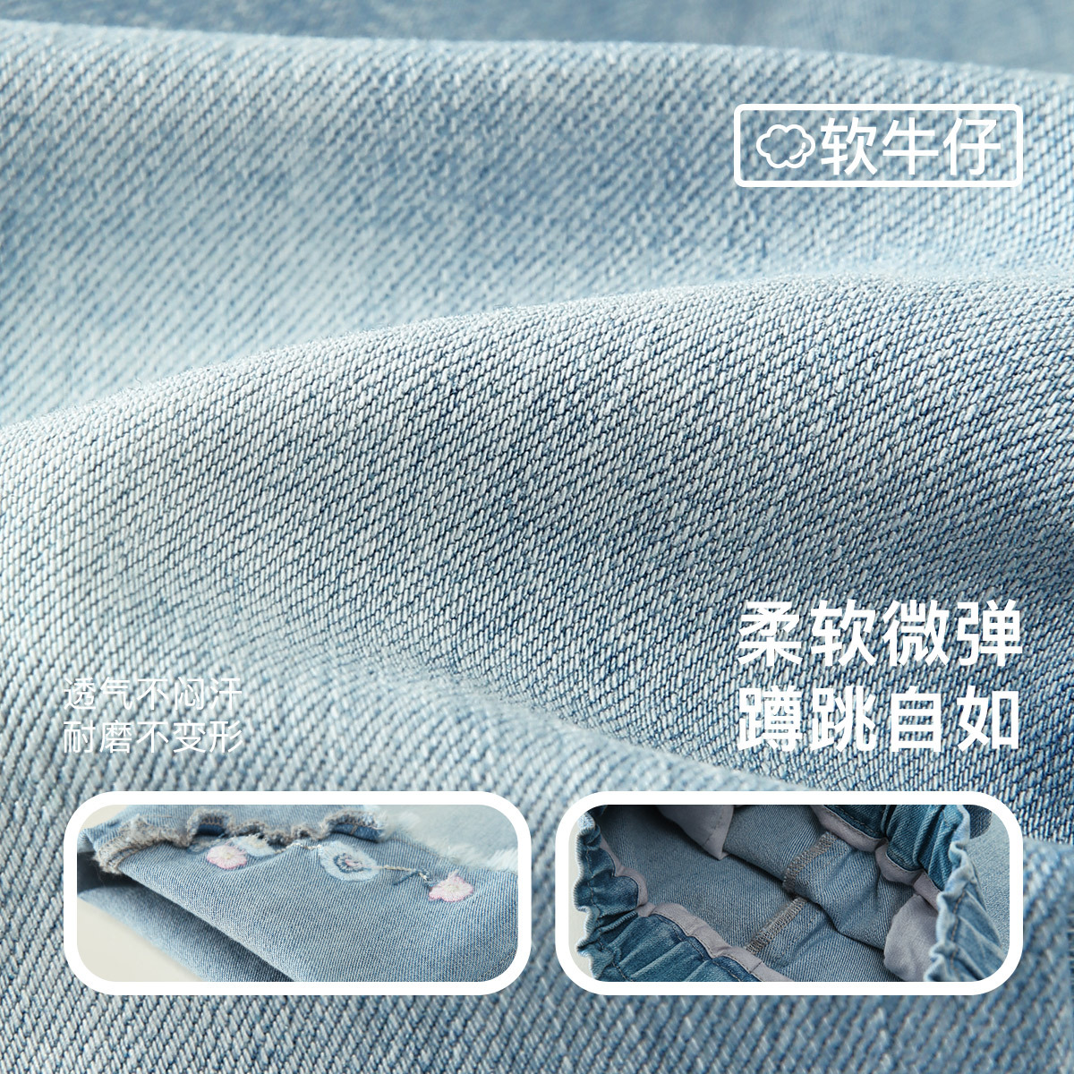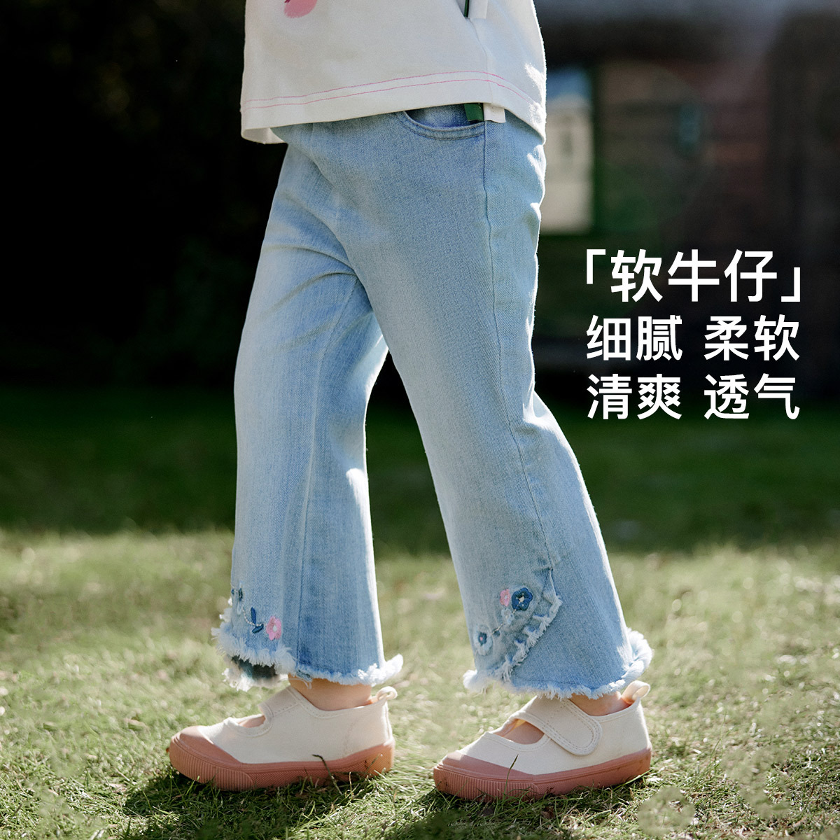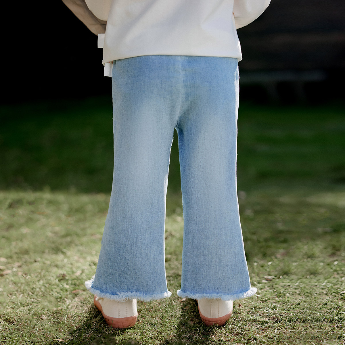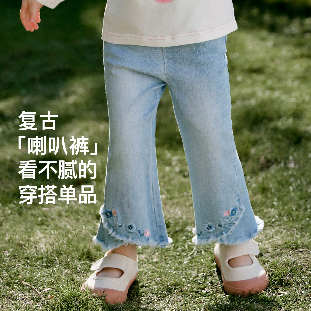 Amira children’s clothing 2024 spring new children’s pants girls’ baby embroidered Denim classic all-match flared pants