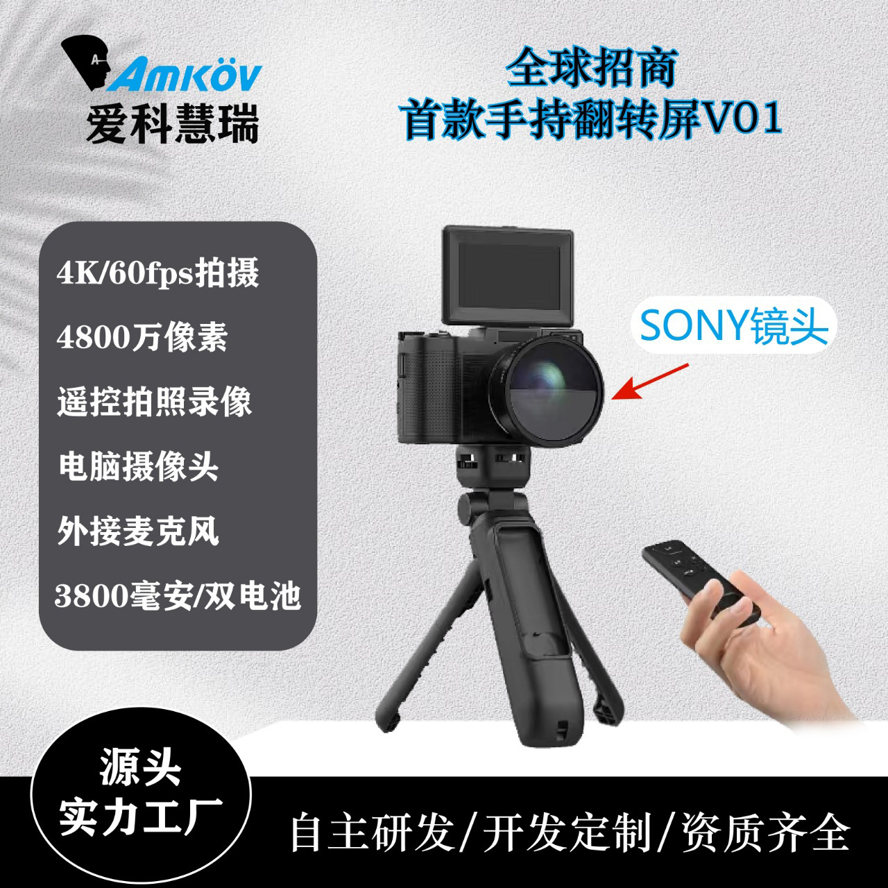 Amkov5K handheld flip screen HD digital micro single camera dual battery imported lens computer camera