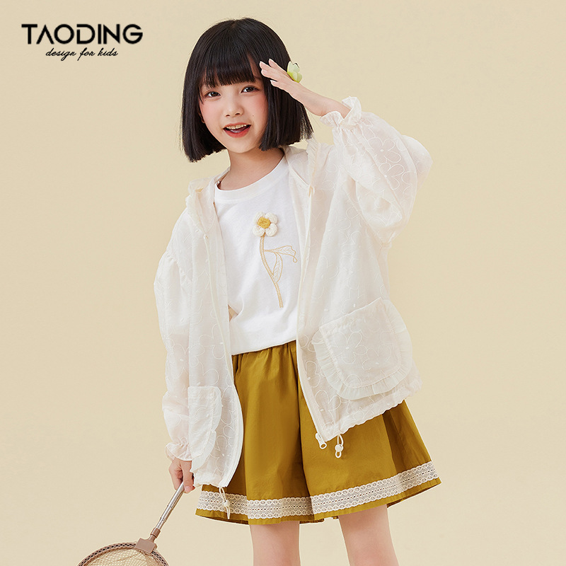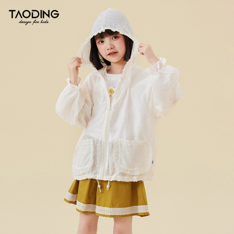 | nameOriginal | Amoy girls sunscreen summer new large children's small fresh sweet lace thin breathable hooded coat |