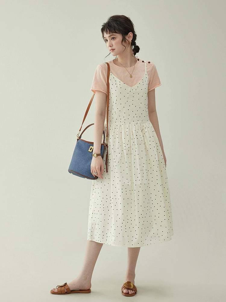 AMUU age-reducing polka-dot summer fashion suspender dress