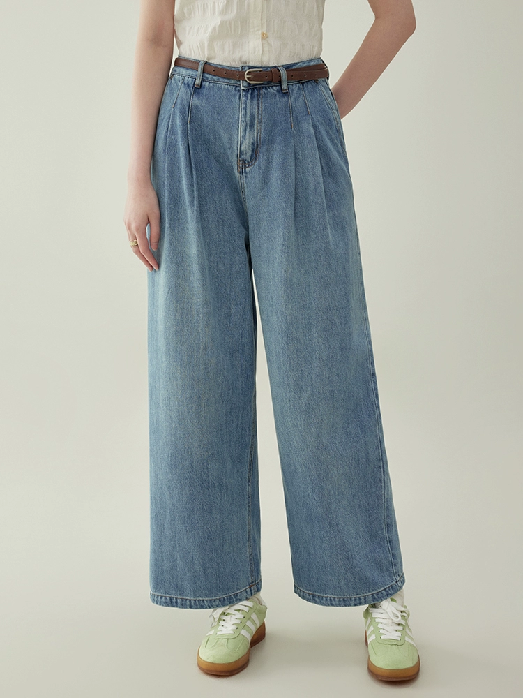 AMUU Beidao high waist solid color pleated straight jeans