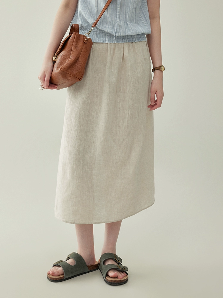 AMUU Beidao Japanese thin summer mid-length skirt linen