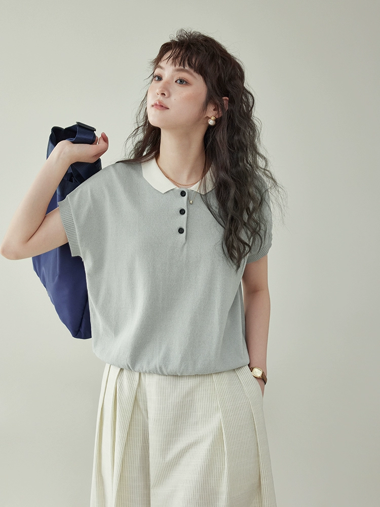 AMUU Beidao original Korean style lapel short-sleeved sweater