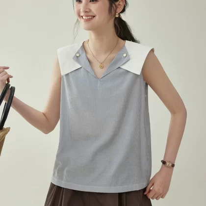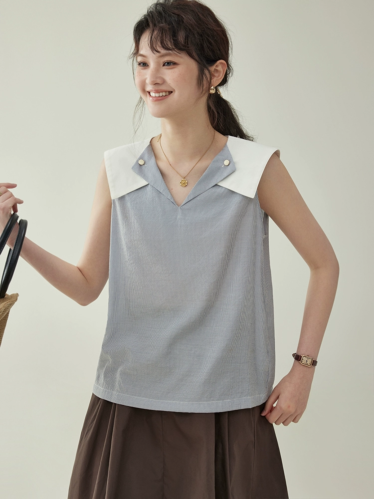 | nameOriginal | AMUU Beidao patchwork navy collar casual sleeveless shirt |