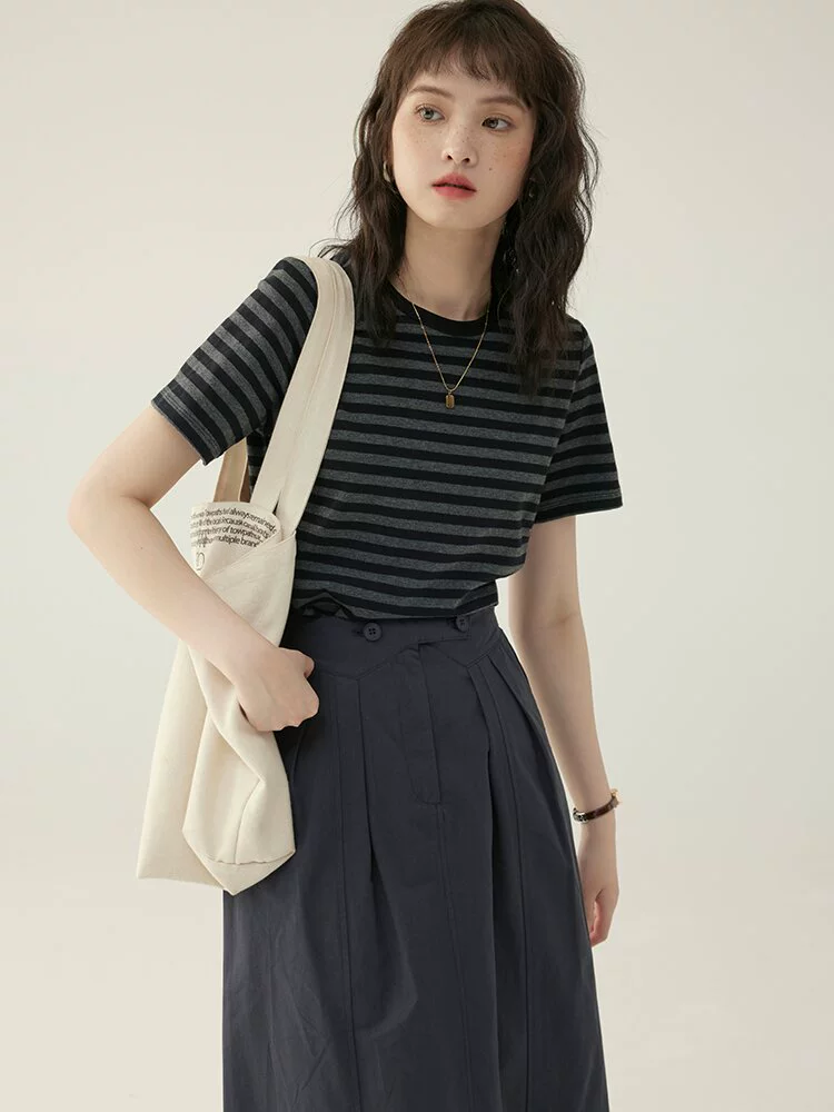 AMUU Retro Casual Stripe Short Sleeve Women’s Summer T-shirt