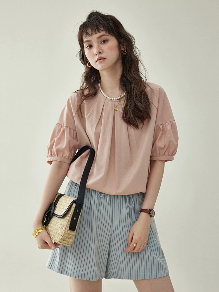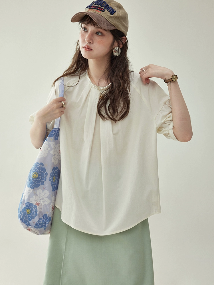 AMUU Kitajima original pleated loose short-sleeved shirt