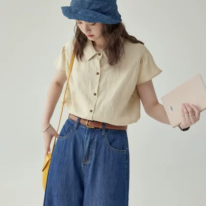 | nameOriginal | AMUU LO collar vintage single-breasted short-sleeved shirt |