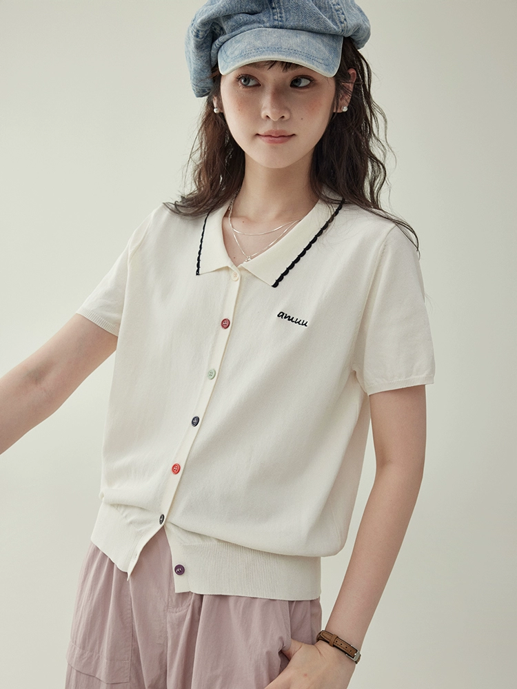 | nameOriginal | AMUU North Island lapel women's summer short-sleeved sweater |
