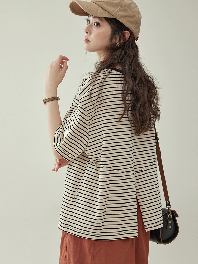 | nameOriginal | AMUU original retro striped loose short-sleeved T-shirt |